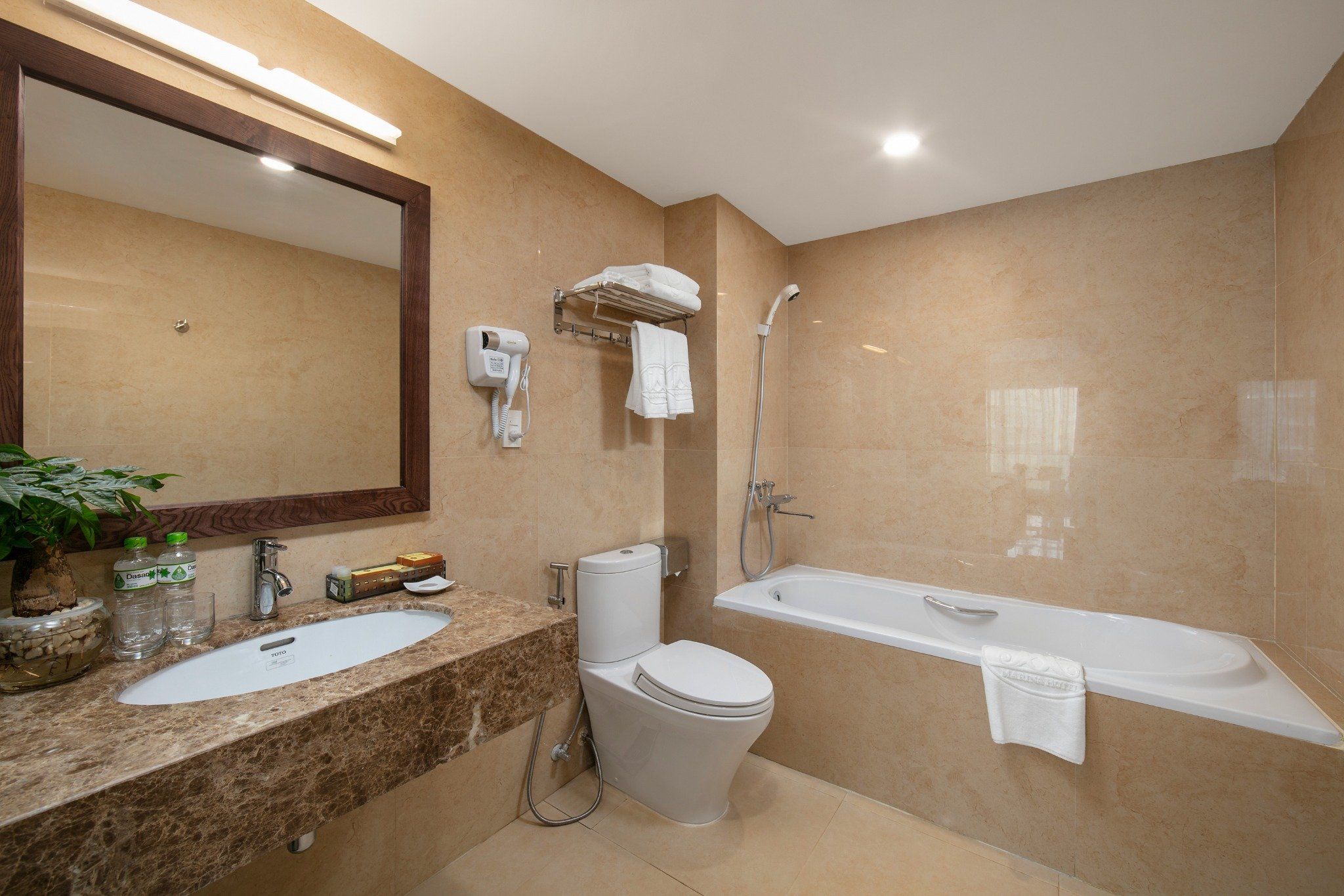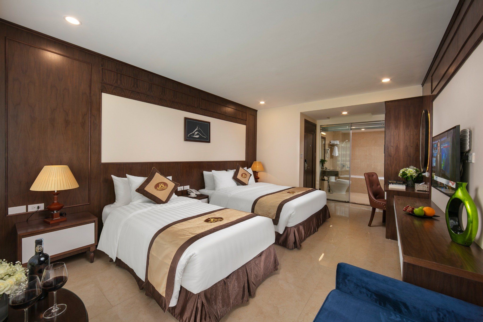 Our luxurious Deluxe Triple rooms, spanning 35m2, are among the most popular choices for guests at Marina Hotel. The furnishings and amenities are arranged according to the principles of feng shui to bring good luck and health during your stay. The room also features a premium bathtub and a spacious, airy atmosphere.